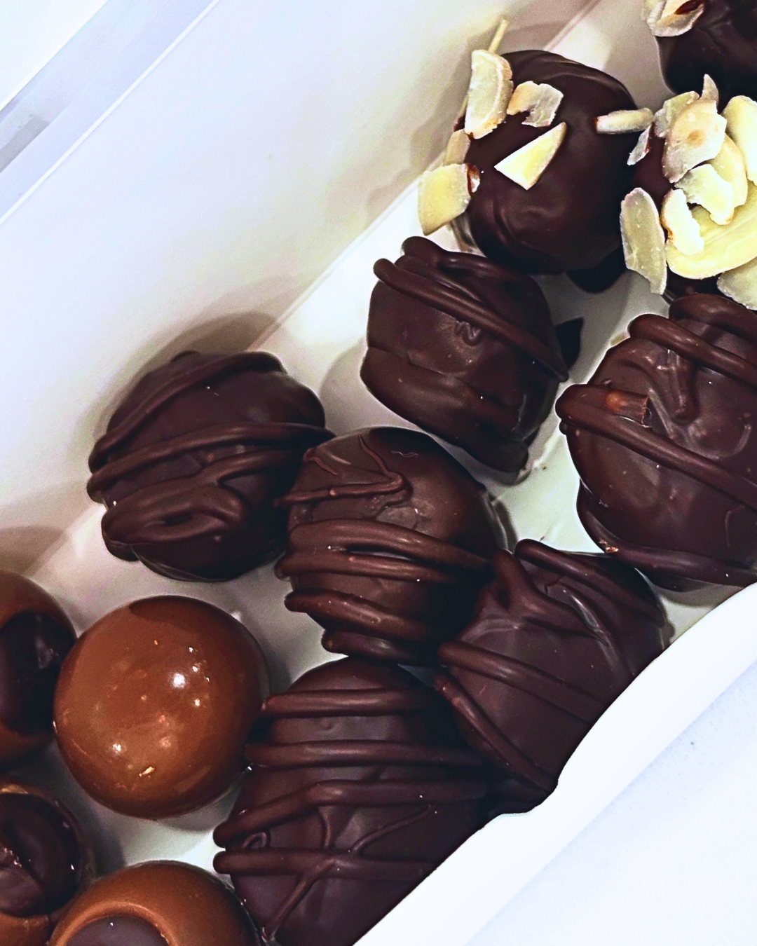 dark chocolate truffles, almond truffles, and dulce de leche coffee ganache truffles- Gluten Free